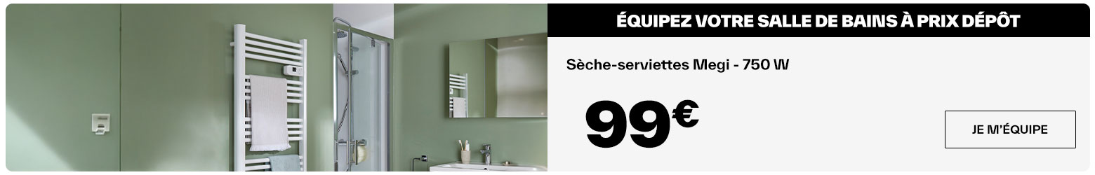 Notre gamme de sèche-serviettes mixtes répond à toutes vos envies, alliant confort thermique, design fonctionnel, et économies. Avec nos radiateurs sèche-serviettes mixtes, la salle de bain est confortable et esthétique tout au long de l’année, le tout sans dépasser votre budget. Commandez dès aujourd’hui en ligne ou rendez-vous dans votre magasin Brico Dépôt pour découvrir nos meilleures offres.