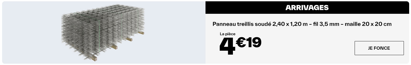 Bon traillis soudéBonne taille de mailles, bon diamètre des fers à béton apportant une bonne structure à la dalle en béton.