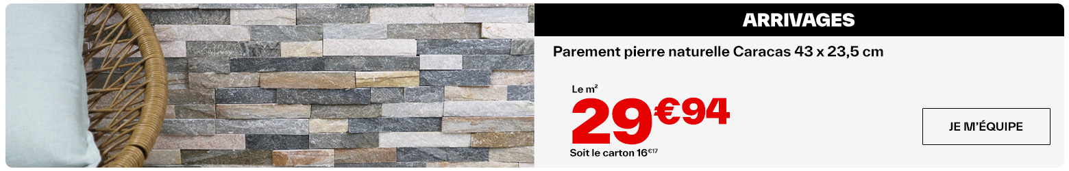La plaquette de parement BLACKSTONE, anthracite est en pierre naturelle 10x40 cm 8-12 mm 10 x 40 cm. Ép. 8 à 12 mm. En pierre naturelle. Coloris anthracite. Le carton de 0,468 m². Pour murs intérieurs/extérieurs abrités.